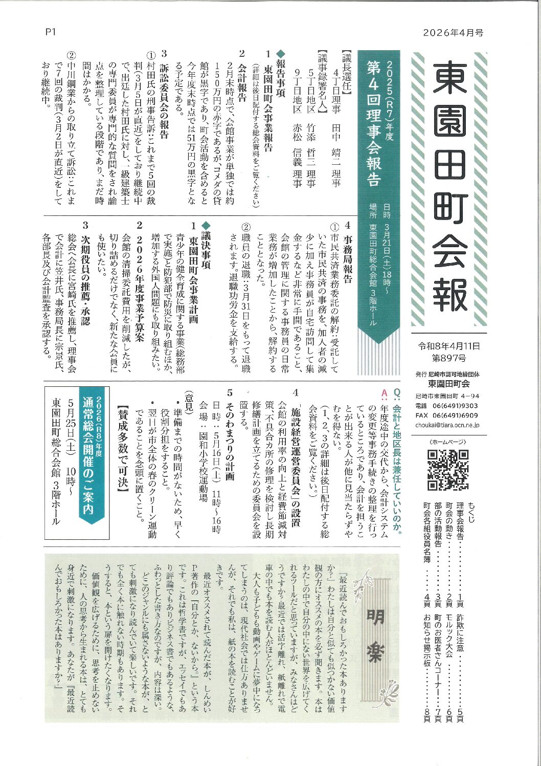 東園田町会は会員の皆さんのボランティアによって運営されています。